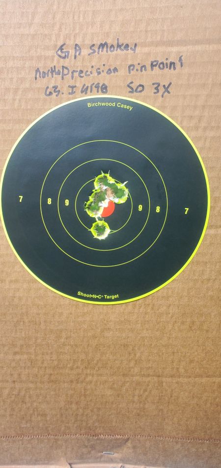 This is a five shot group of Northern Precision Free Formed 30 cal muzzle loading bullets (which shooters experience a higher rate of accuracy with compared to:)