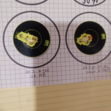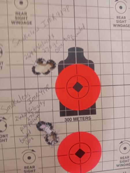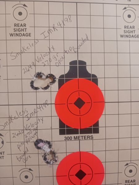 This is a Northern Precision 325 grain sharp tip, this group was fired also with smokeless powder in a 1- 22 twist 50 cal ,also with the Harvester short black smooth sabot.